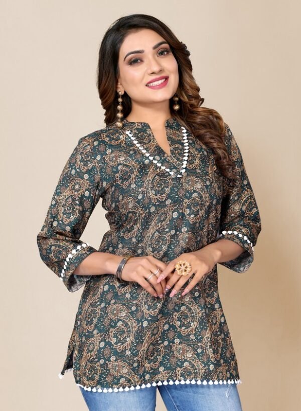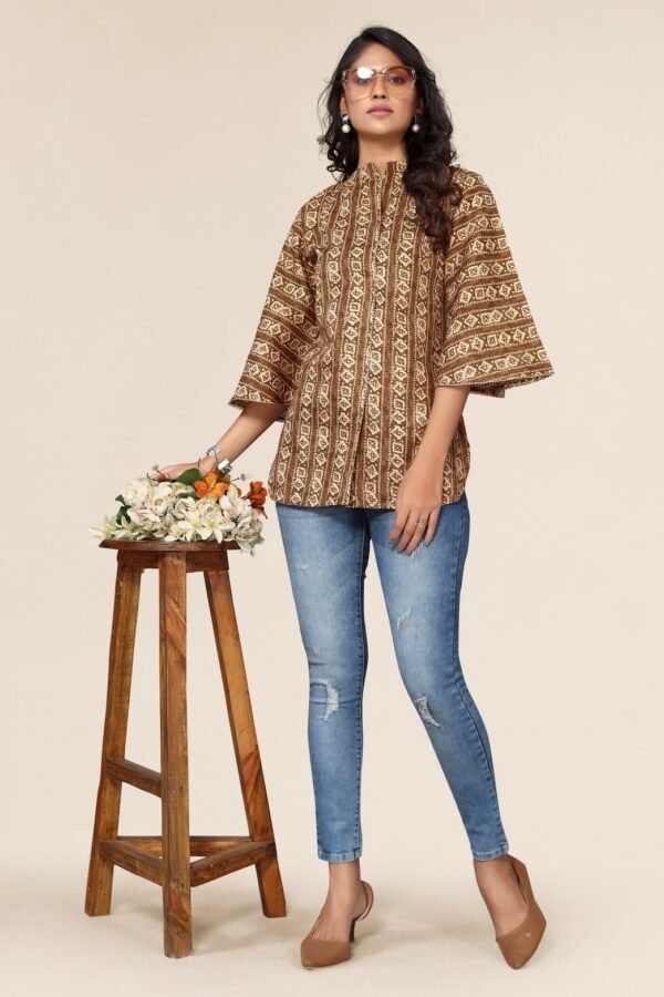 Women’s Cotton Blend Brown Bandhani Printed Top