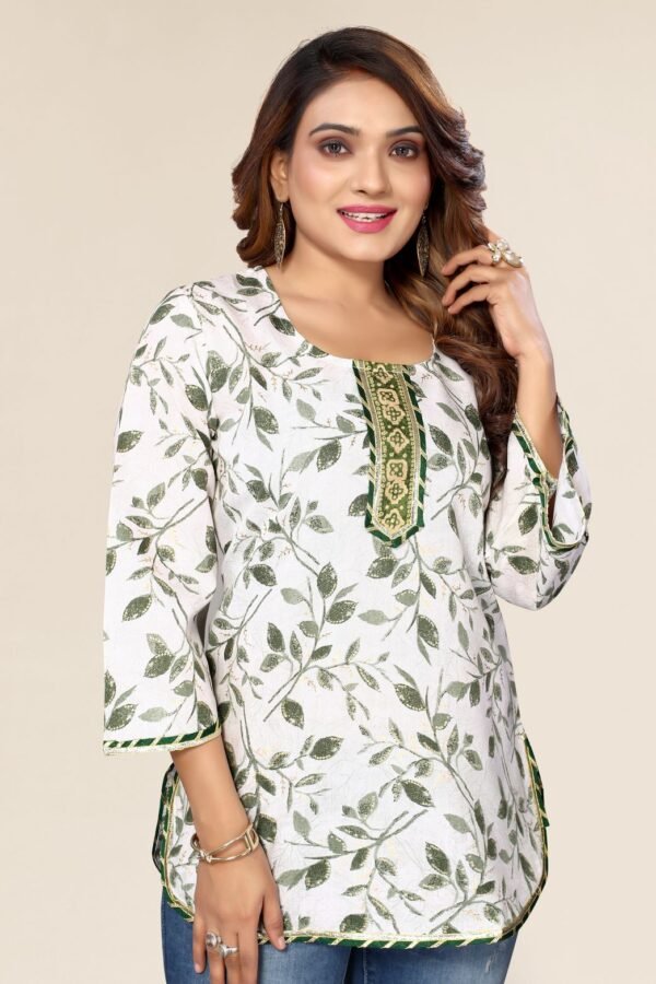 Women’s Dark Blue Cotton Blend Floral Printed Slit Top