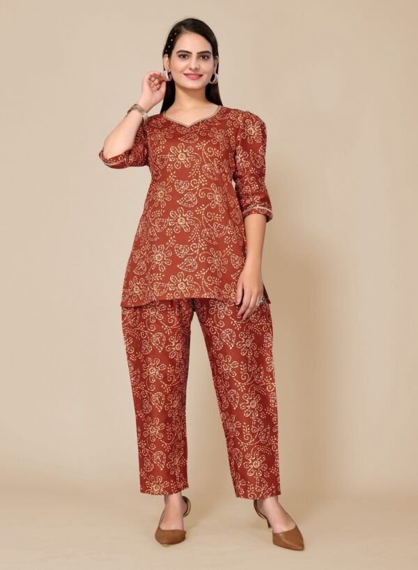 Women’s Maroon Cotton Leheriya Printed Co-ord Set