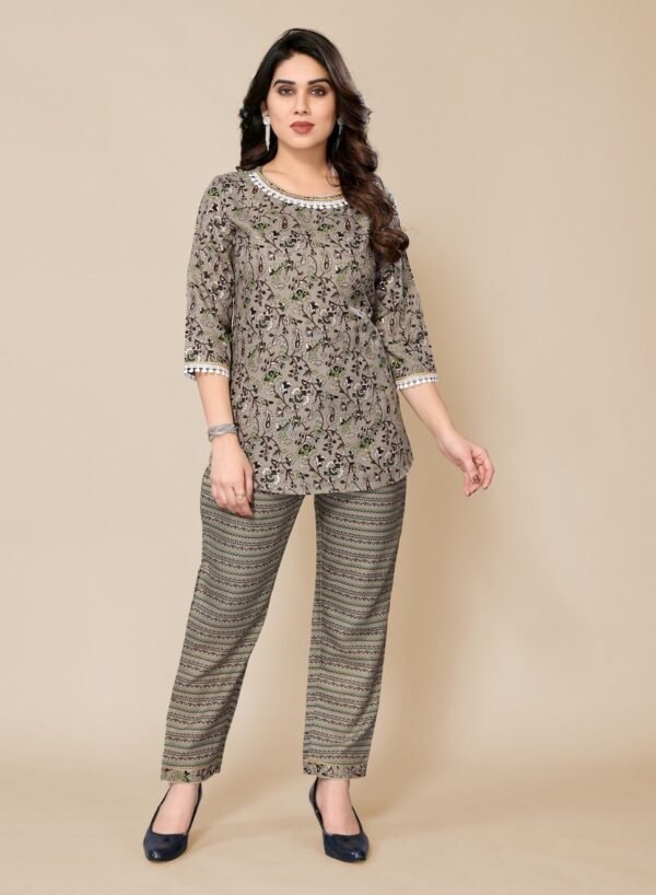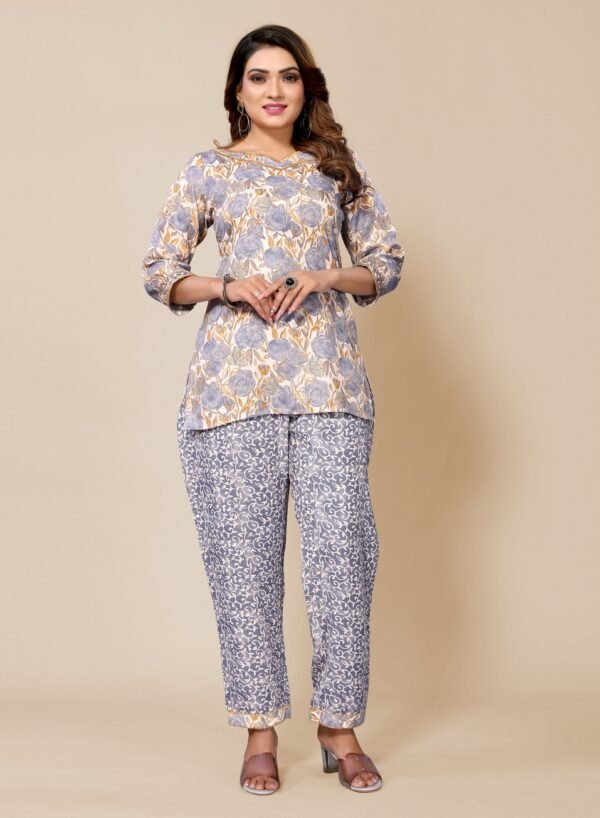 Eye-Catching Beige Floral Embroidery Work Co-ord Set For Women