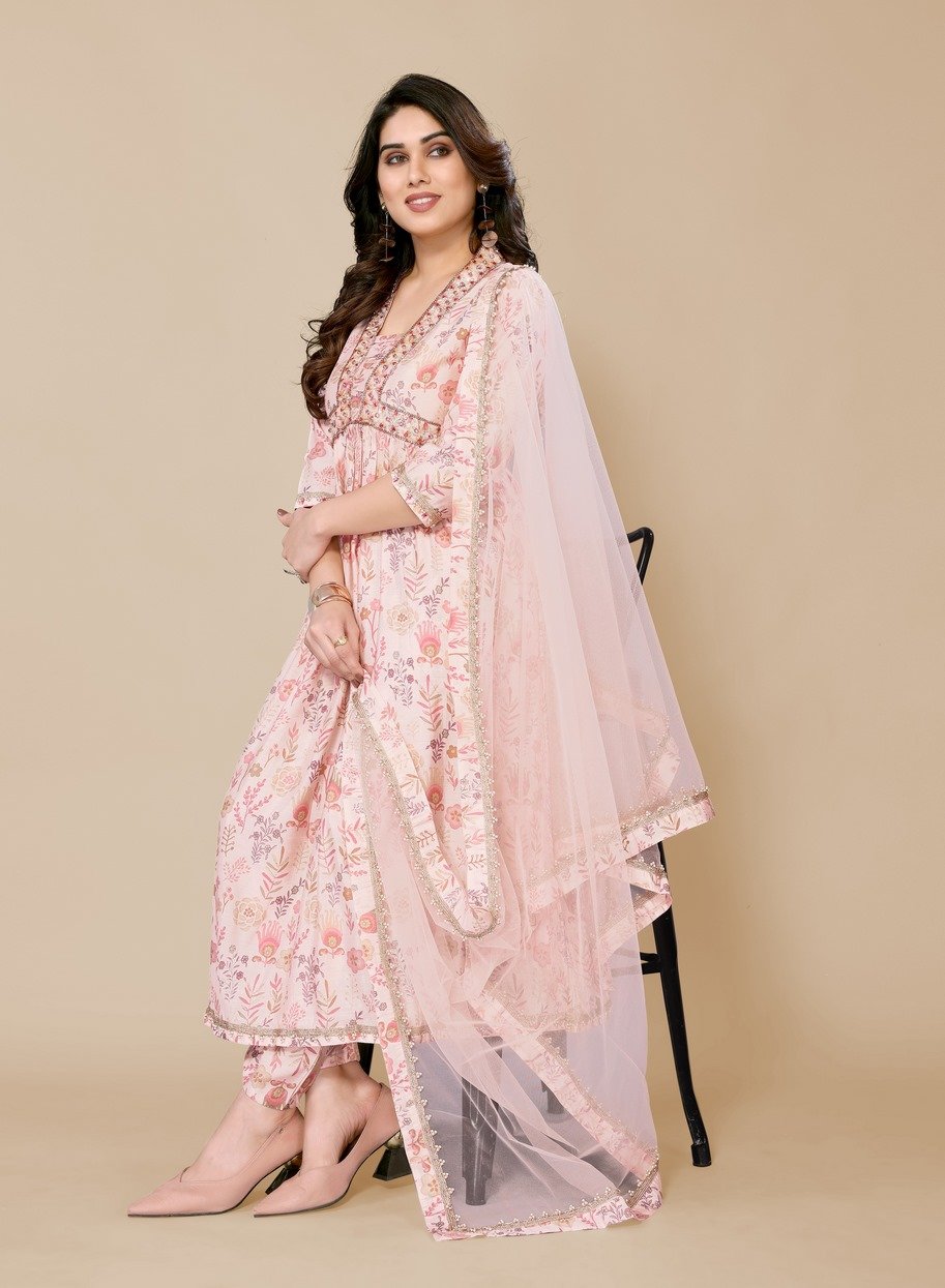 Women’s Cotton Floral Printed Empire Kurta Pant With Dupatta