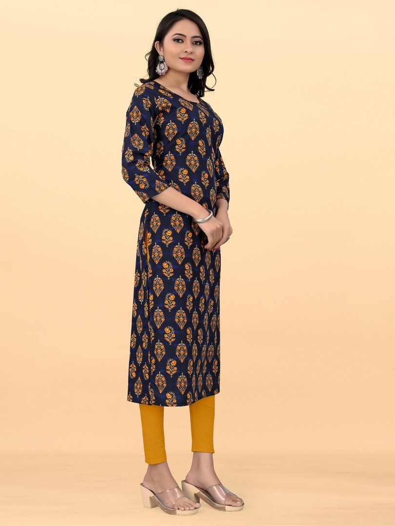 Women’s Dark Blue Floral Printed Straight Kurti