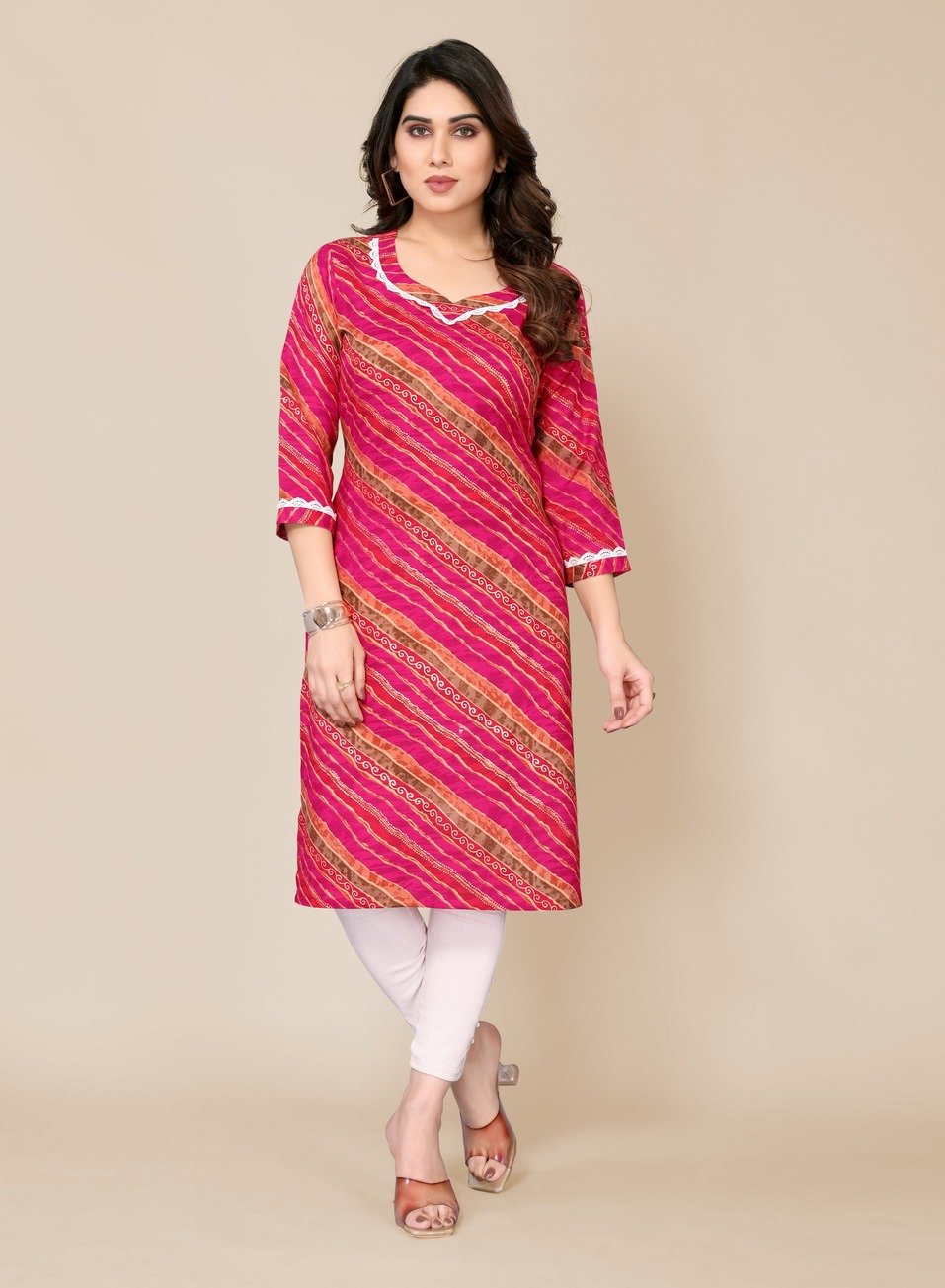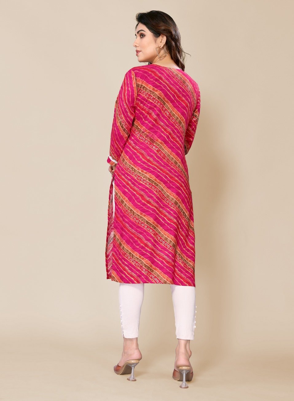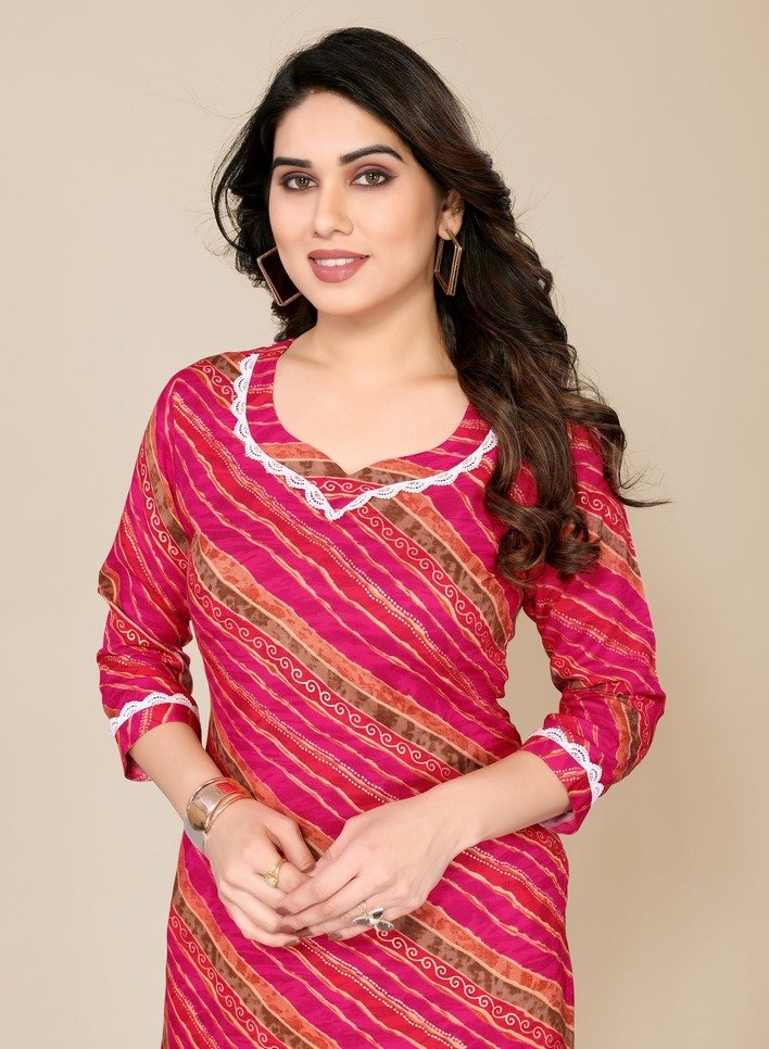 Women’s Dark Pink Leheriya Printed Straight Kurti