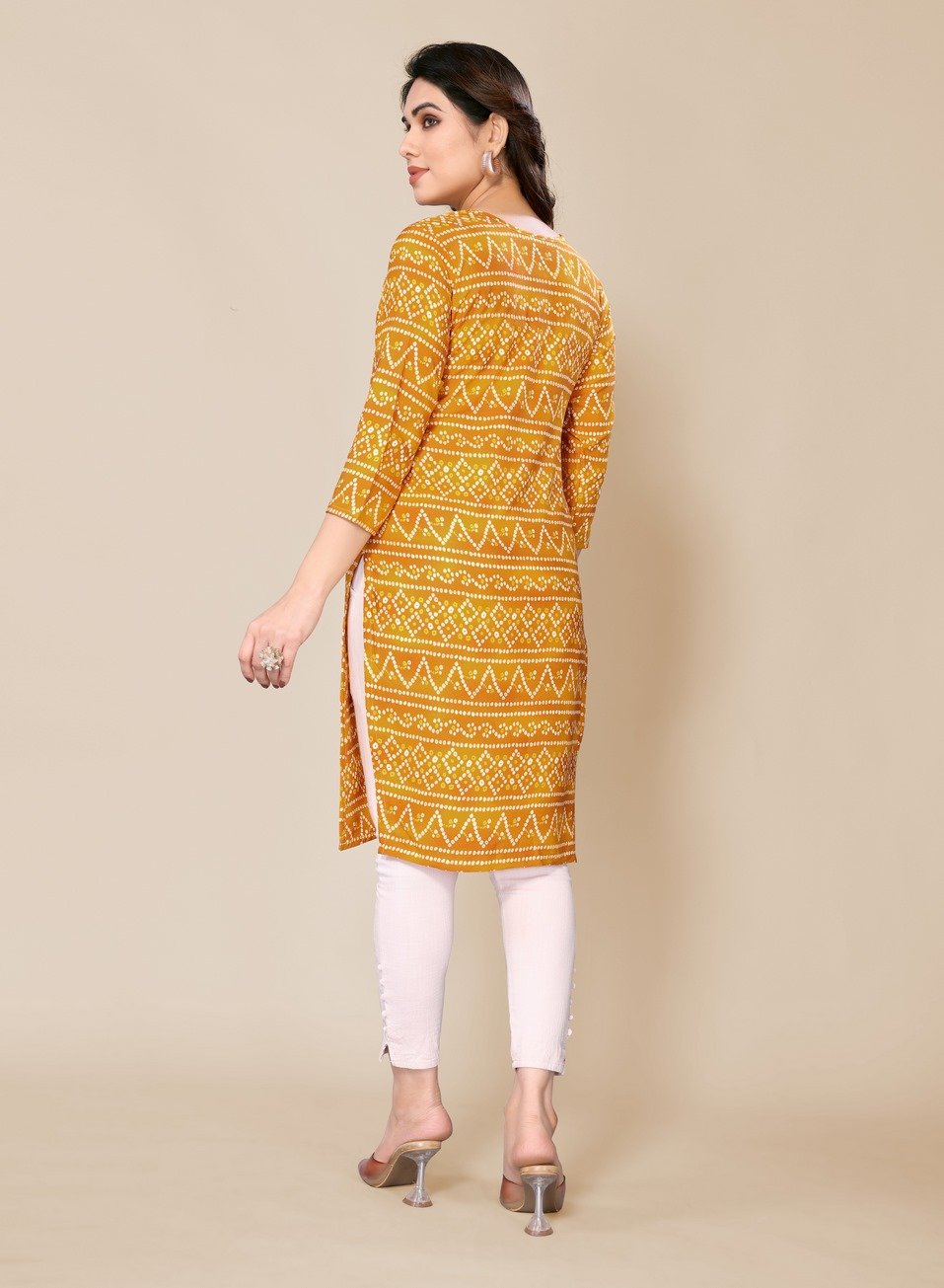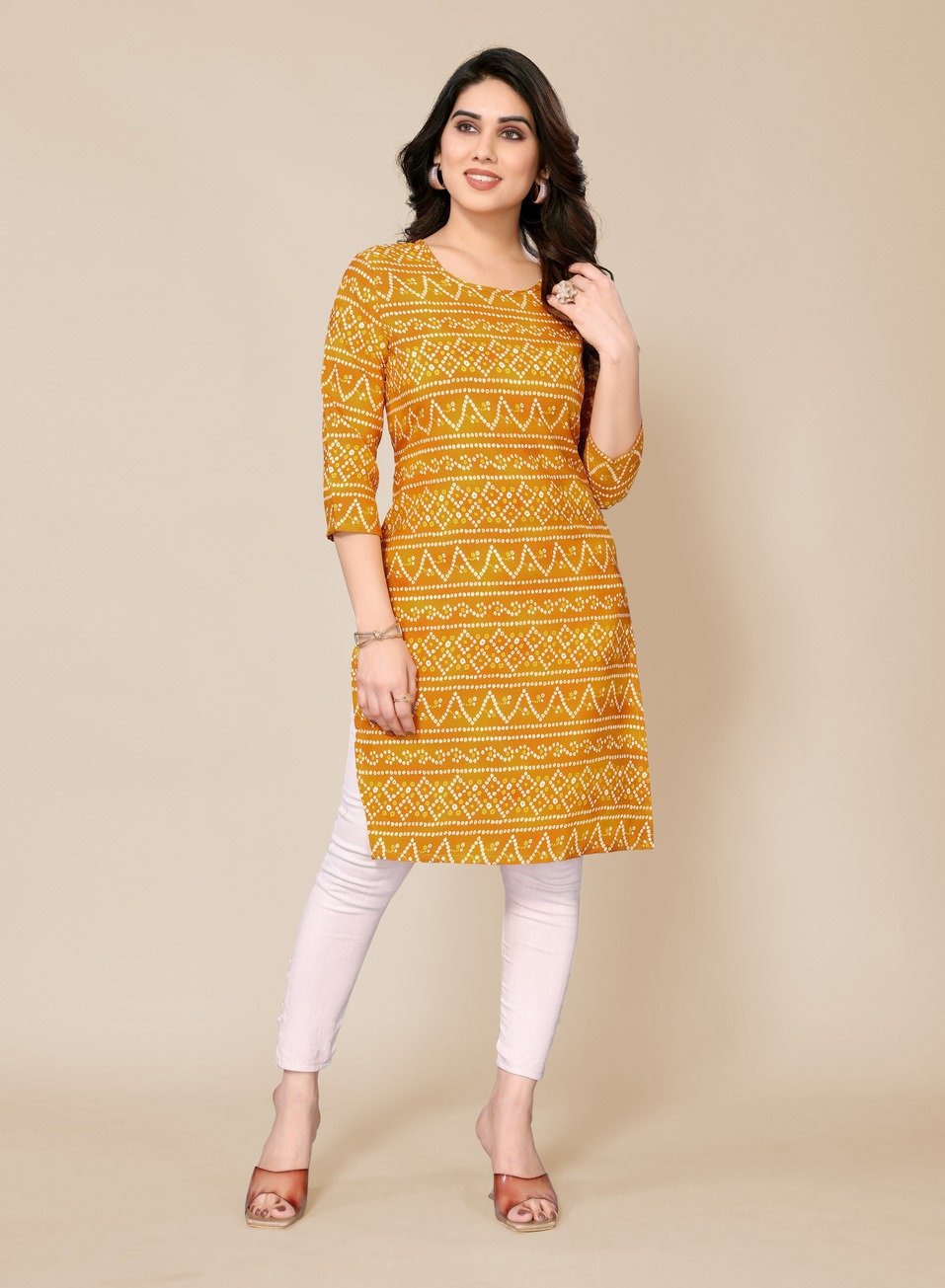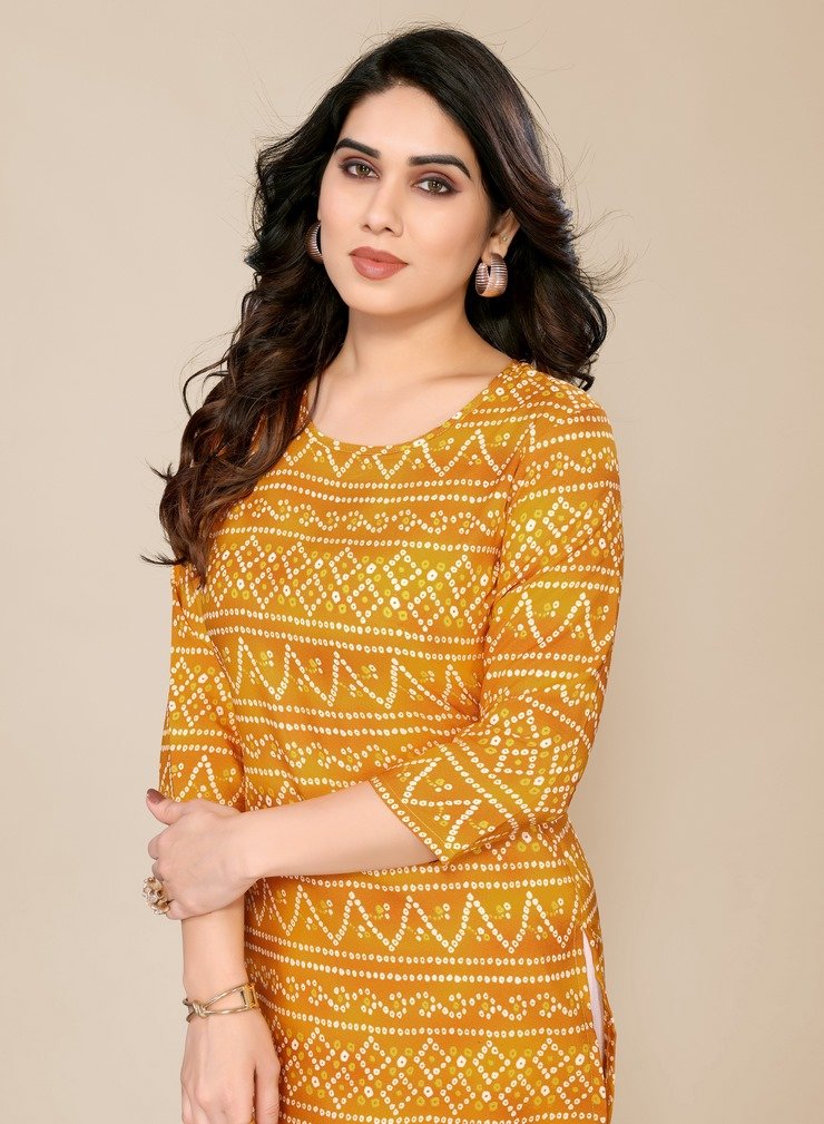 Women’s Dijon Yellow Bandhani Printed Straight Kurti