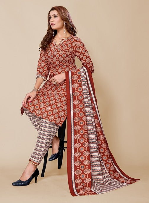 Women’s Maroon Cotton Blend Printed Straight Kurta with Pant & Dupatta
