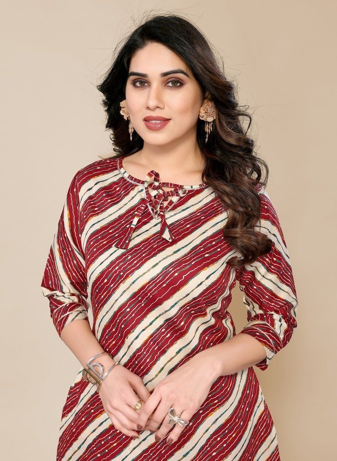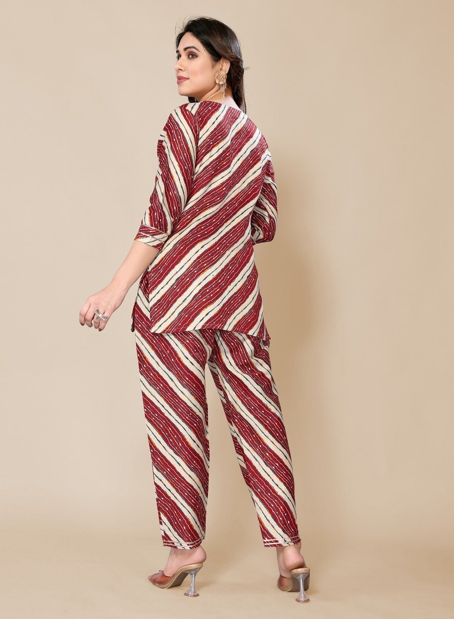Women’s Maroon Cotton Leheriya Printed Co-ord Set