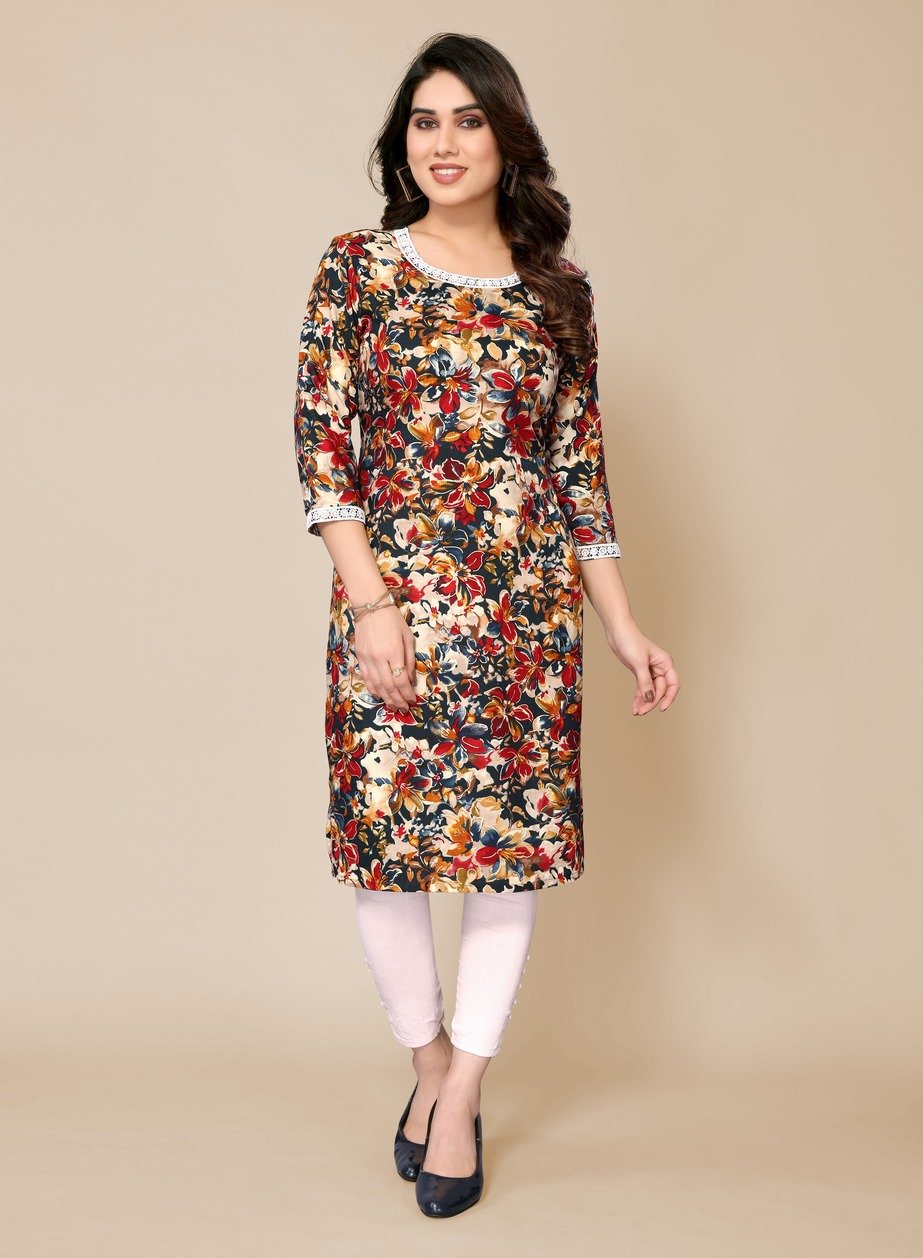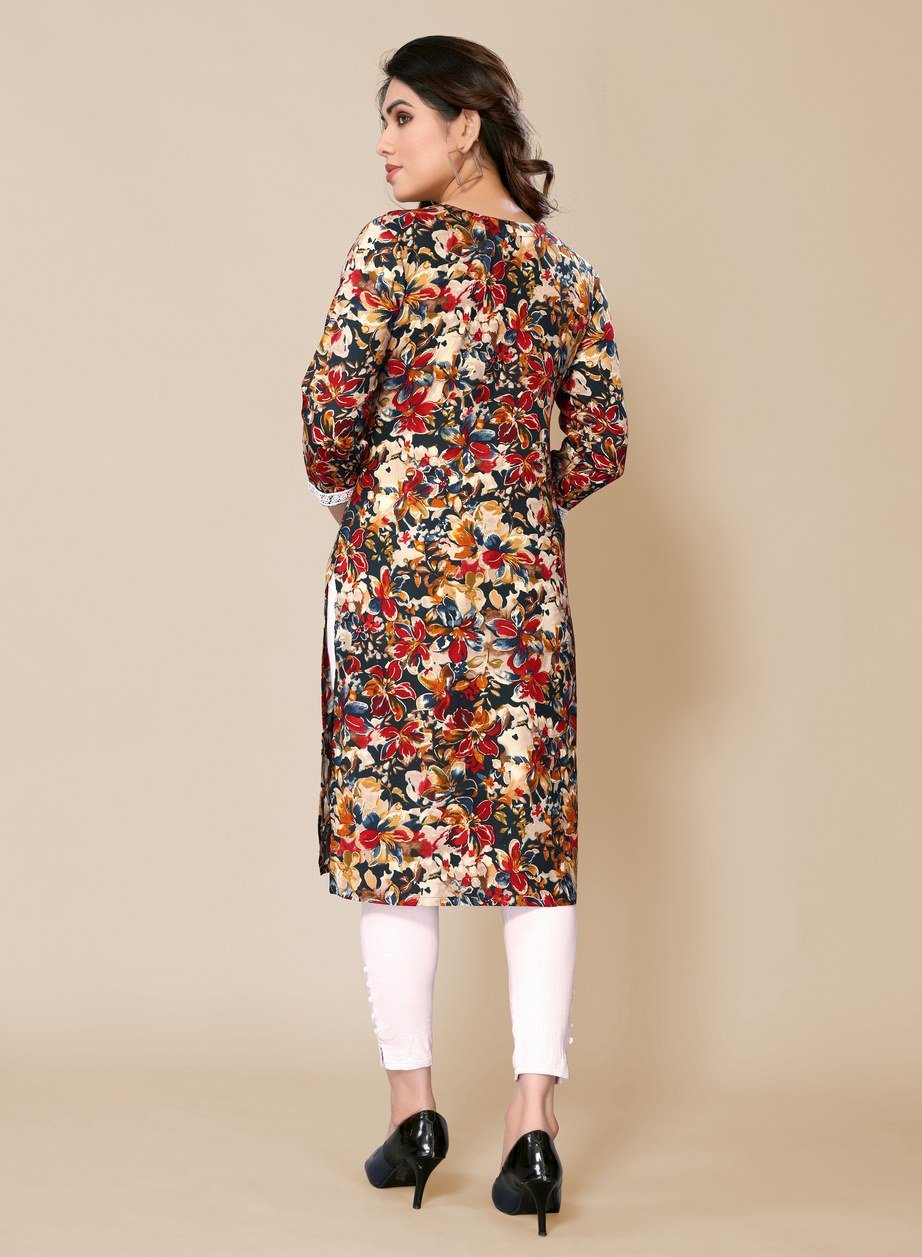 Women’s Multicolor Floral Printed Straight Kurti