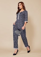 Women’s Navy Blue Cotton Blend Bandhani Printed Clothing Set