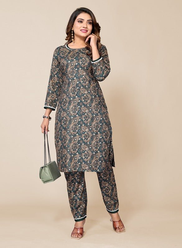 Women’s Pine Green Paisley Printed Kurta Pant Set