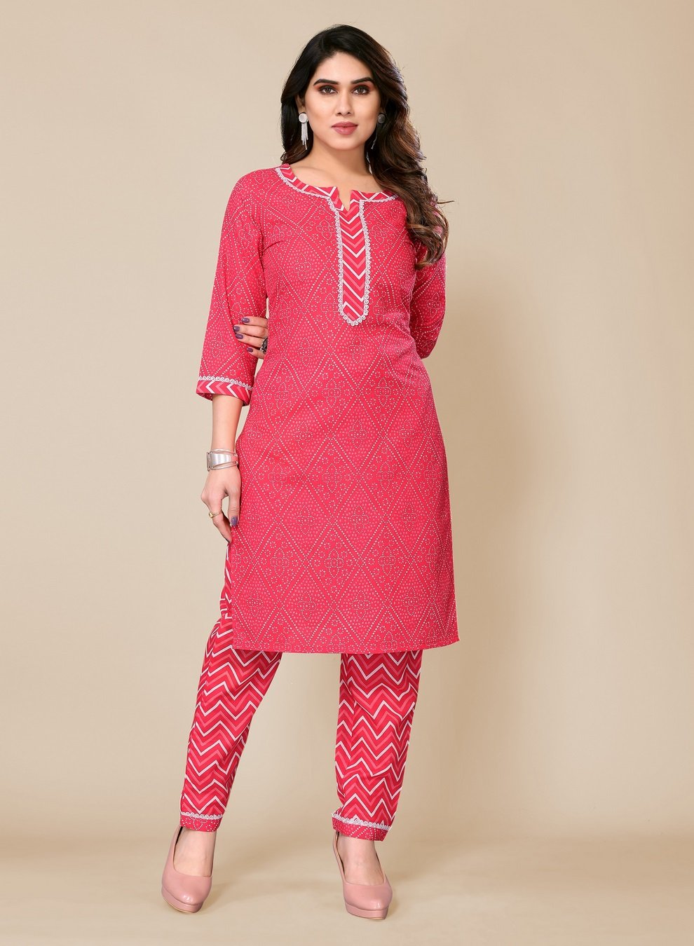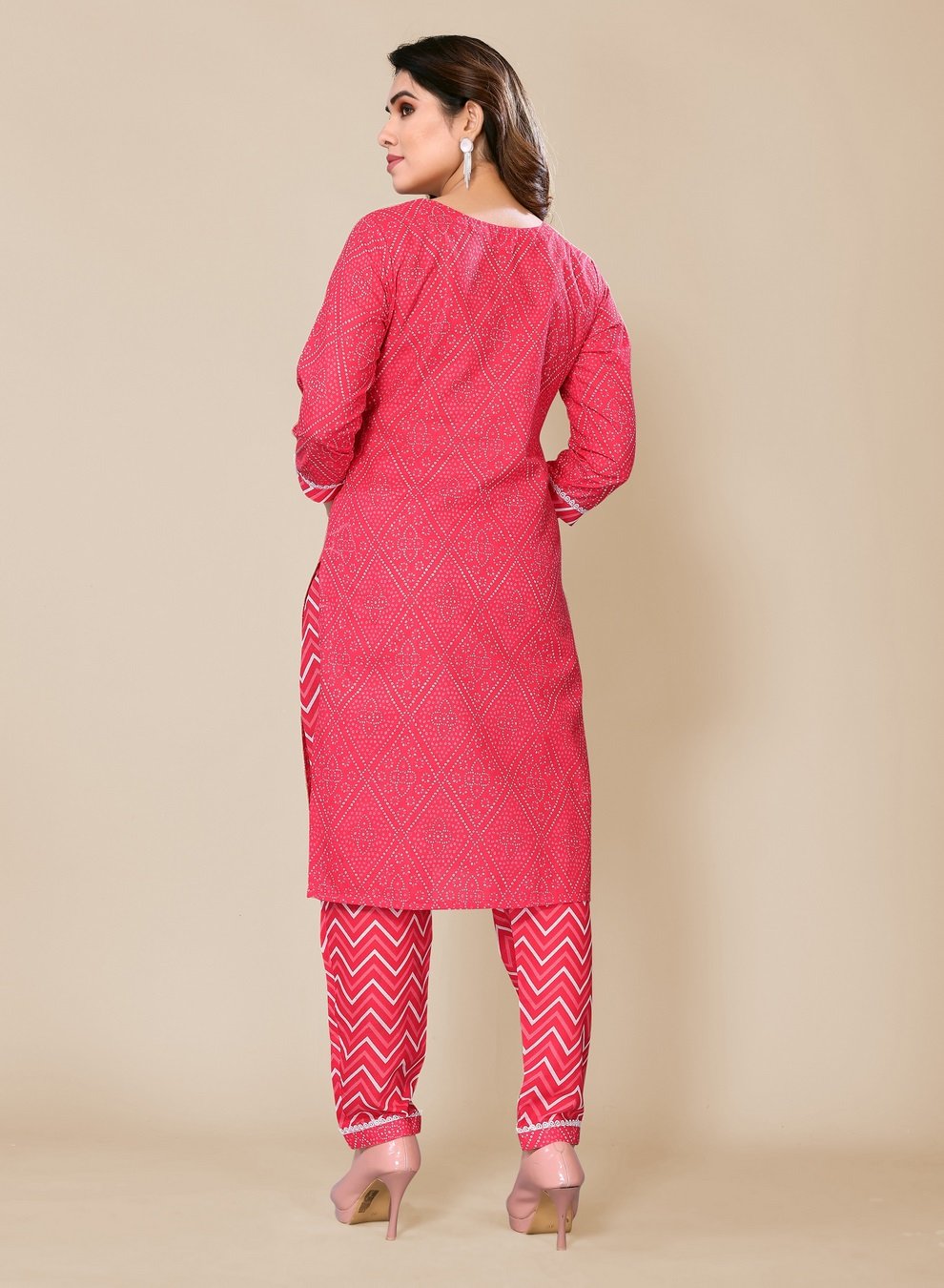 Women’s Pink Bandhani Printed Kurta Pant set